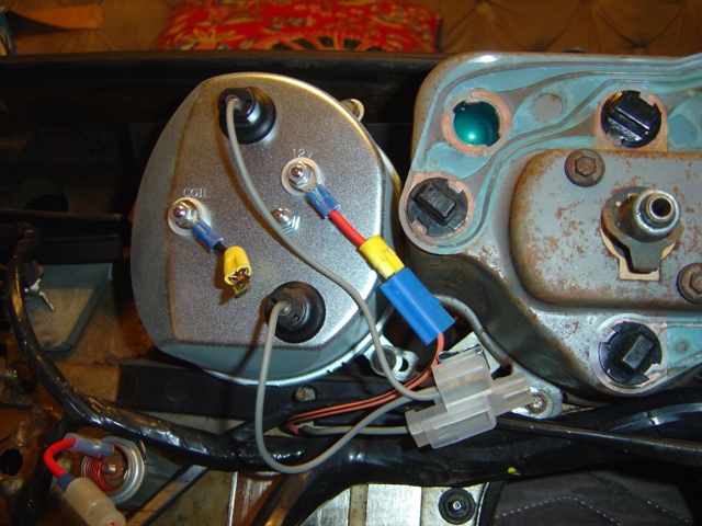 Tach is installed and light harness is hooked up. Ames says no one reproduces this light harness in their tach install instructions, except I bought it from them back in June. So who knows? Case ground strap is re-applied.