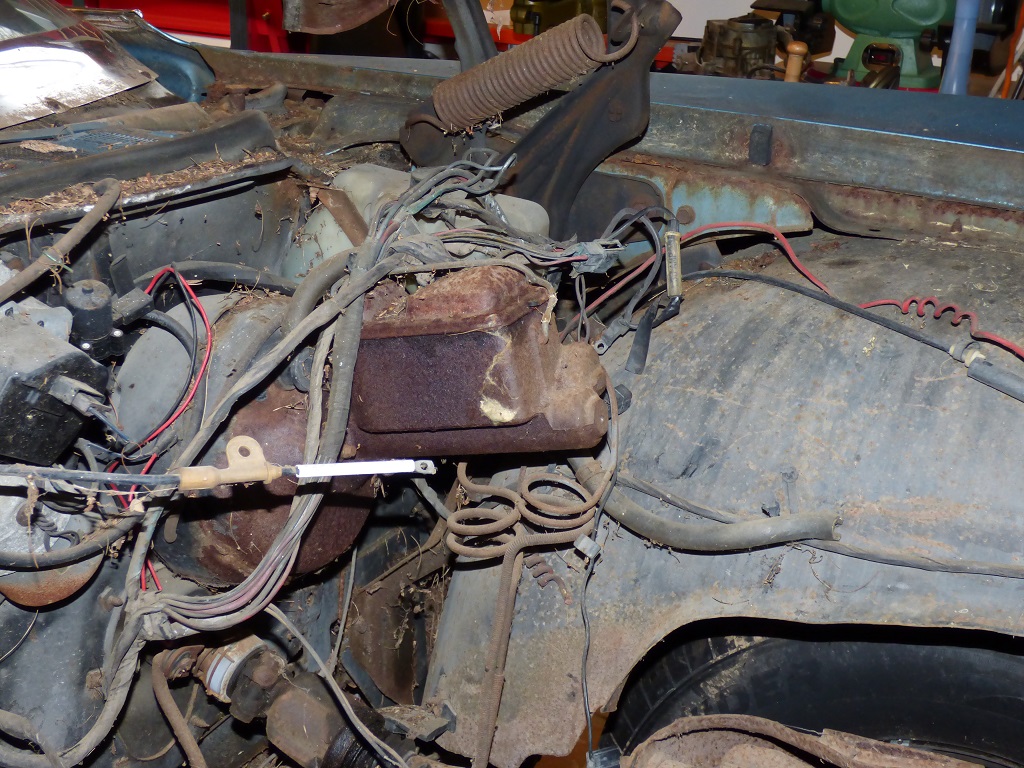 They didn't cut a single wire off of the engine harness when they removed the engine! Master cylinder looks like it's been leaking. Bendix brake booster is unusual to see on these cars but still offered.