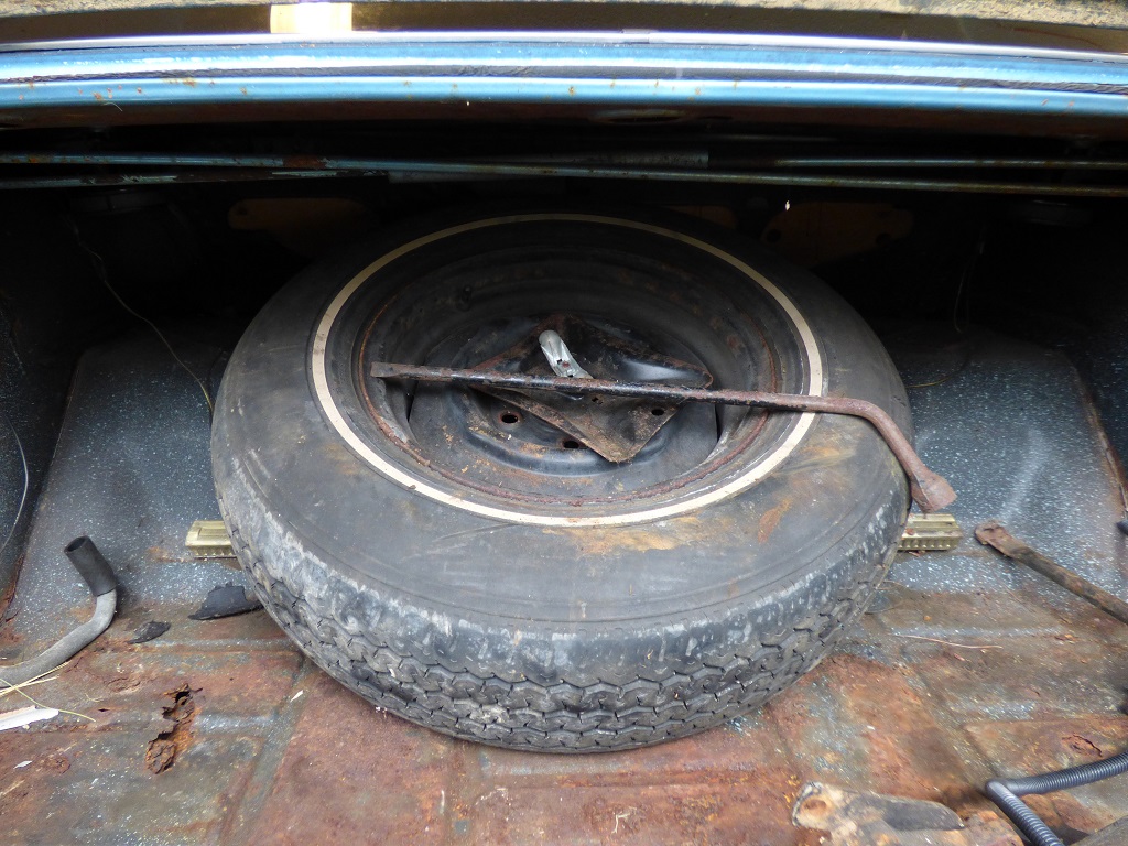 Spare tire with all of the hold down hardware and jack setup. Neat.