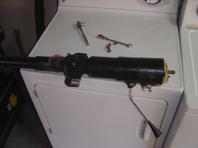 Since the steering column took a hammer and chisel to it at one time from some idiot trying to boost it, it had developed a pretty serious sticking ignition problem. The key should release when you let go of it in the Crank position, but this one would just stay put. It's a safety issue, not to mention the column was ugly and turn signal switch was broken as a result of the idiots banging on it. I found someone selling a very nice condition one so it was time to replace it.