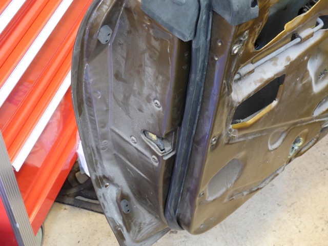 Disassembly of the old door panels stopped early due to sticking screws. PB Blaster liberally sprayed.