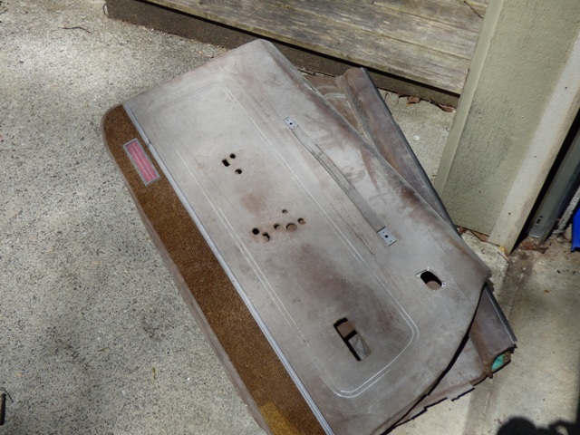 Both new door panels (unassembled) and both old door panels (in sad shape)