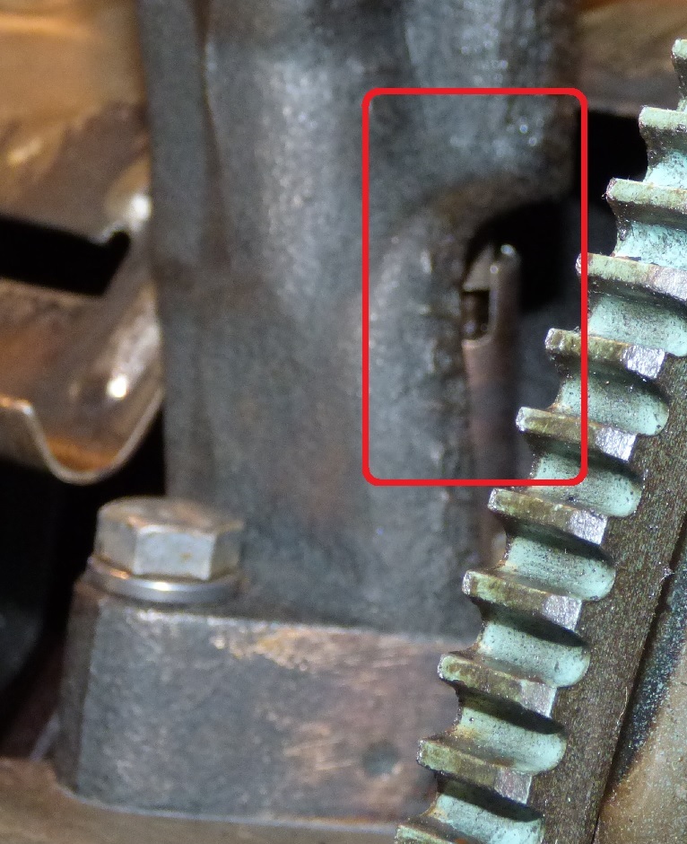 Fuel pump eccentric goes on. Another way to tell it's on the #6 firing position is that it's pushing the fuel pump down - it would be in the upper left side if it was at #1.
