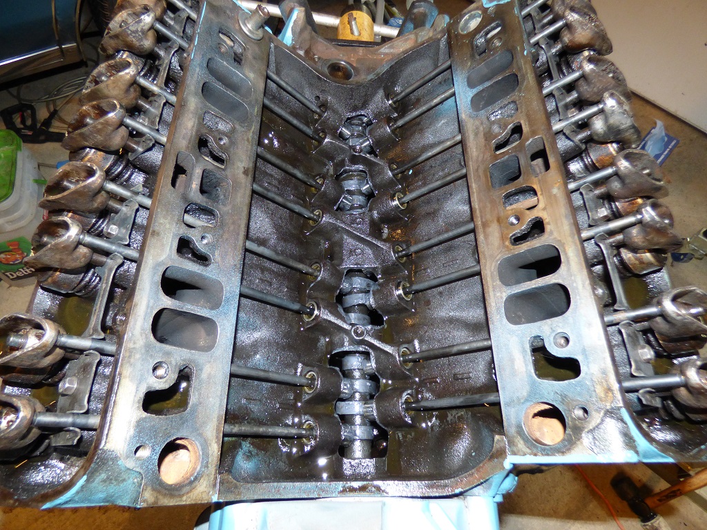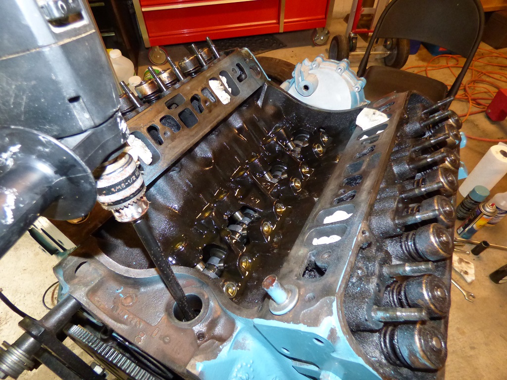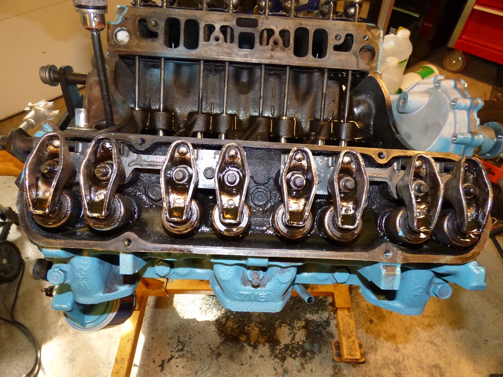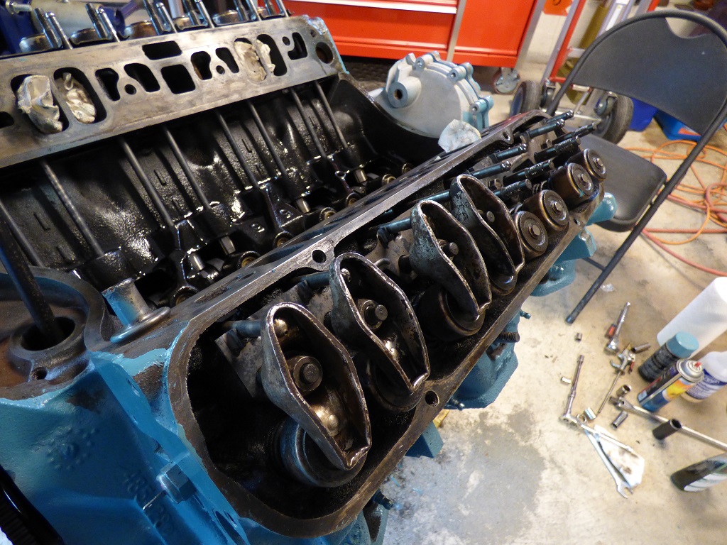 Rocker arms are all installed and beginning to tighten down. This is the factory setup, so 20 ft-lbs on each nut right? WRONG. Well... rather this produced some issues with VERY tight pushrods and lifters and the valves not wanting to fully open. This gave me great pause. I regrouped for a few days while reading and investigating. Turns out that the lifters were sticky and not moving because they had been sitting on the shelf so long. I forced them (with gentleness) and let them sit a few days. This gave me time to verify that they were lubed and clean and also to see if my oil pan leaks (it hasn't so far, woohoo!!). Once I returned a few days later the valves and lifters moved smooth as silk and the lifter and pushrods spin in their bores like they should. Whew...
