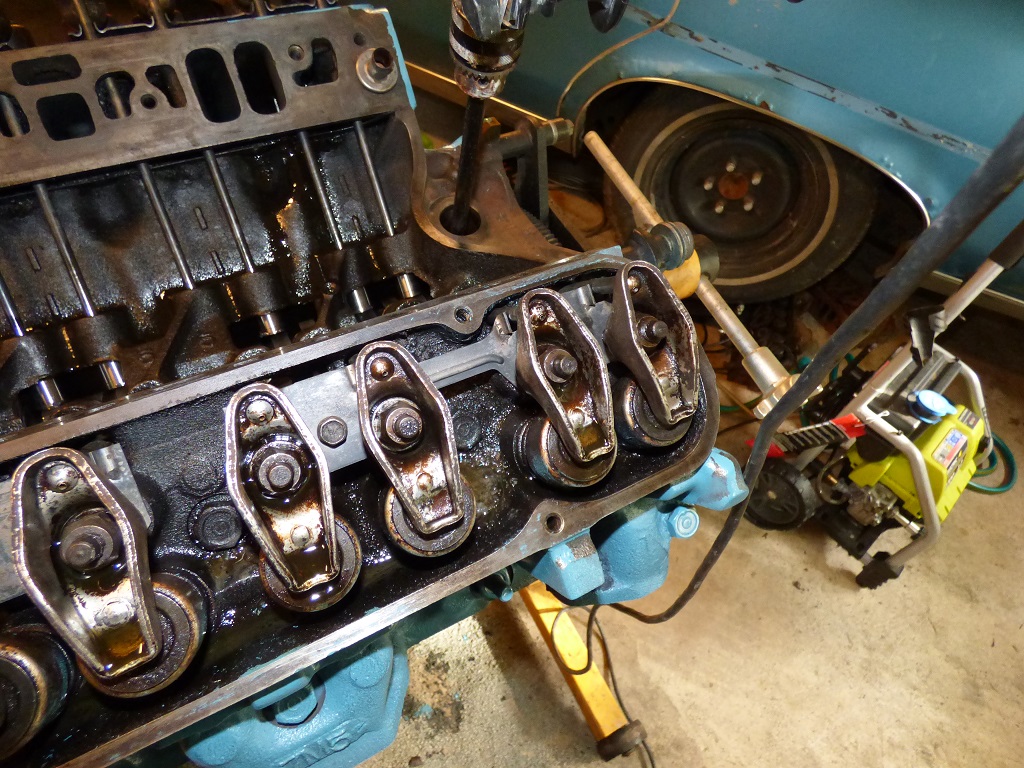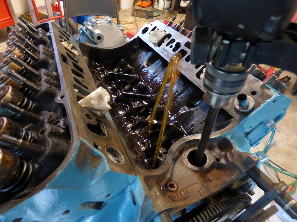 Now the favorite part: verifying that all of the rocker arms oil. Theoretically a running engine would have them oiled up and flinging oil in no time, but I don't want to chance it since it's an expensive mistake if one doesn't. The passenger side all came up effortlessly.