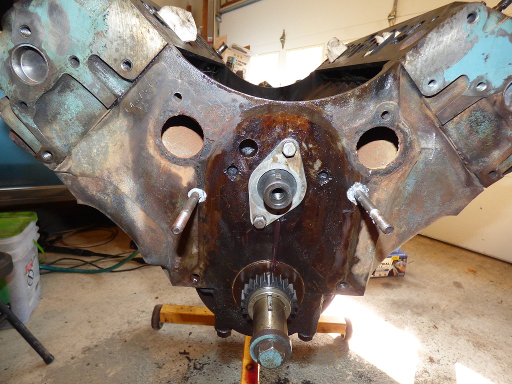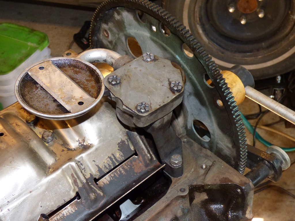 Oil pump drive rod goes in. Absolutely imperative that it does too otherwise it's a bear to get it in!