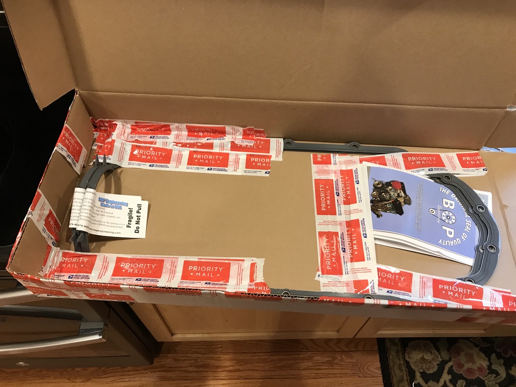 I never liked the cork oil pan gasket as they always seem to leak on me. The BOP one-piece oil pan gasket uses modern technology sealing and looks really nice. Can't beat how nice it is when they ship it to you either!