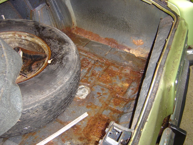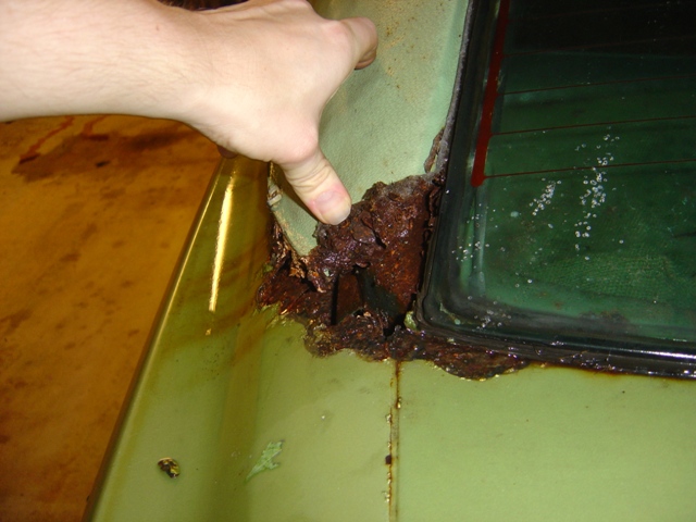 Passenger fender rotten out back where metal trim plate collected dirt.