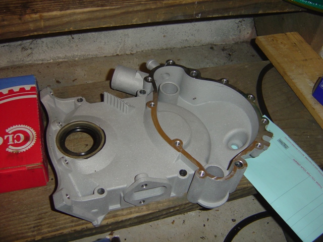 New timing cover! With front seal installed (always my most nervous moment).