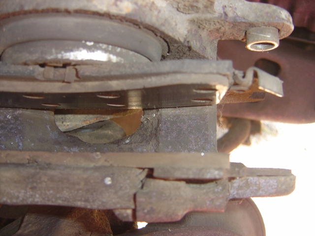 Driver side brake assembly. No nail drags on either side with a very thick rotor, meaning the pads weren't to the rivets yet and I'm saved from rotor replacement on this side too!