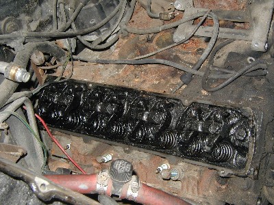 Nice and black. Not rusty (always a good thing on this car). I had to remove a set of plumbing from the heads. I assume this is smog equipment.