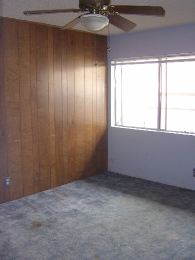 Another view of the second bedroom. Once again the wood paneling is what this room has going for it...