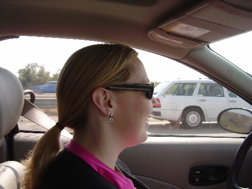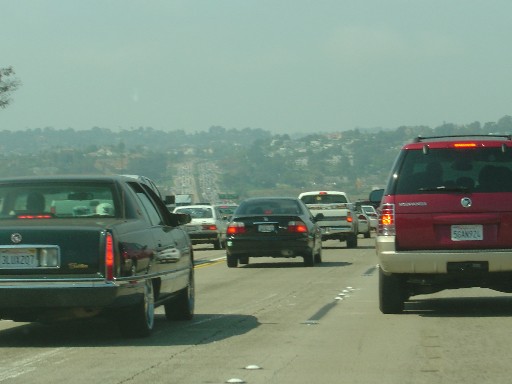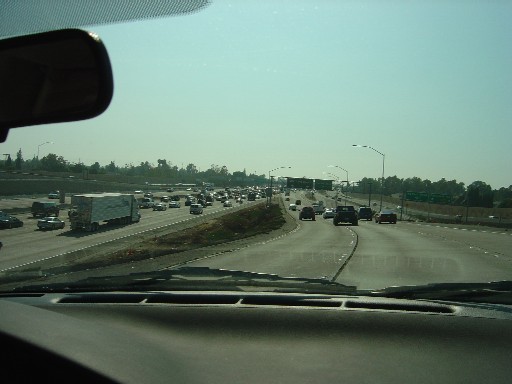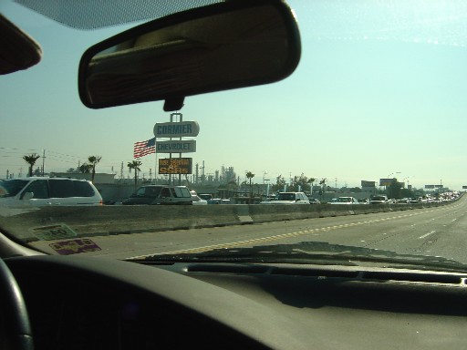 Aren't we glad we aren't trying to leave Los Angeles now? Lisa's speedometer says 65MPH while the other side of the 405 is at a standstill.
