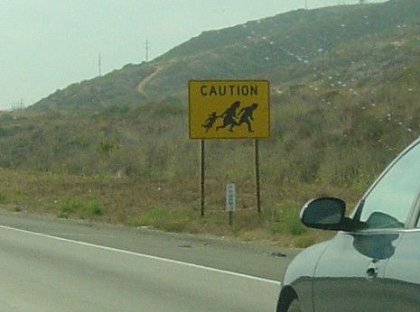 Watch out for people (illegals) making a mad dash across the road. This sign is right by the border patrol station on I-5.